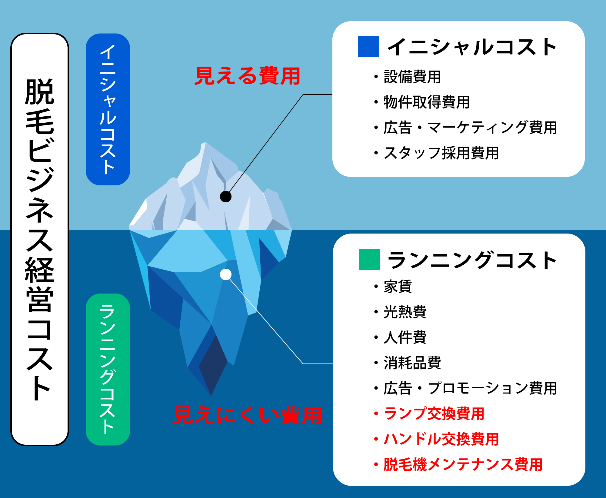 ランニングコストの重要性脱毛ビジネスを成功させるためには、イニシャルコストだけでなく、ランニングコストも重要な要素であることを認識する必要があります。