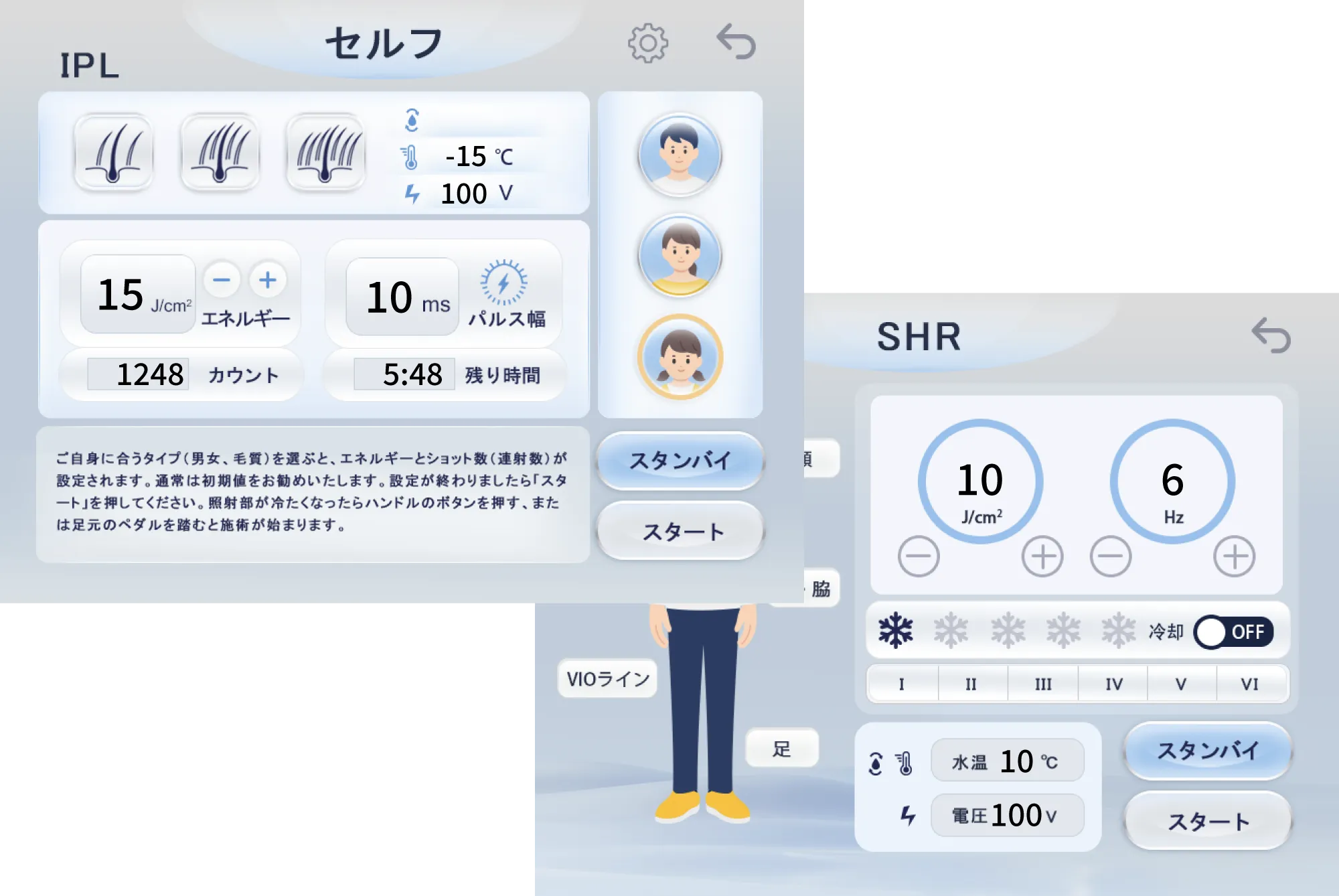 | 脱毛システム | IPL・SHR・IPL+光フェイシャル |